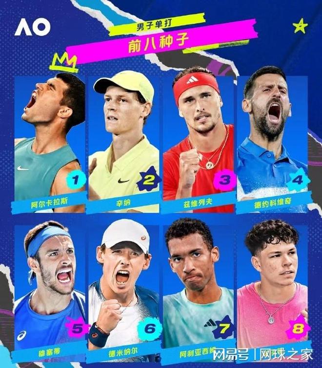 另外,北京时间昨天,2026澳网官宣了男女单打种子球员名单。男单方面,前八号种子分别是: 1. 阿尔卡拉斯 2. 辛纳 3. 兹维列夫 4. 德约科维奇 5. 穆塞蒂 6.德米纳尔 7. 阿利亚西姆 8. 谢尔顿
